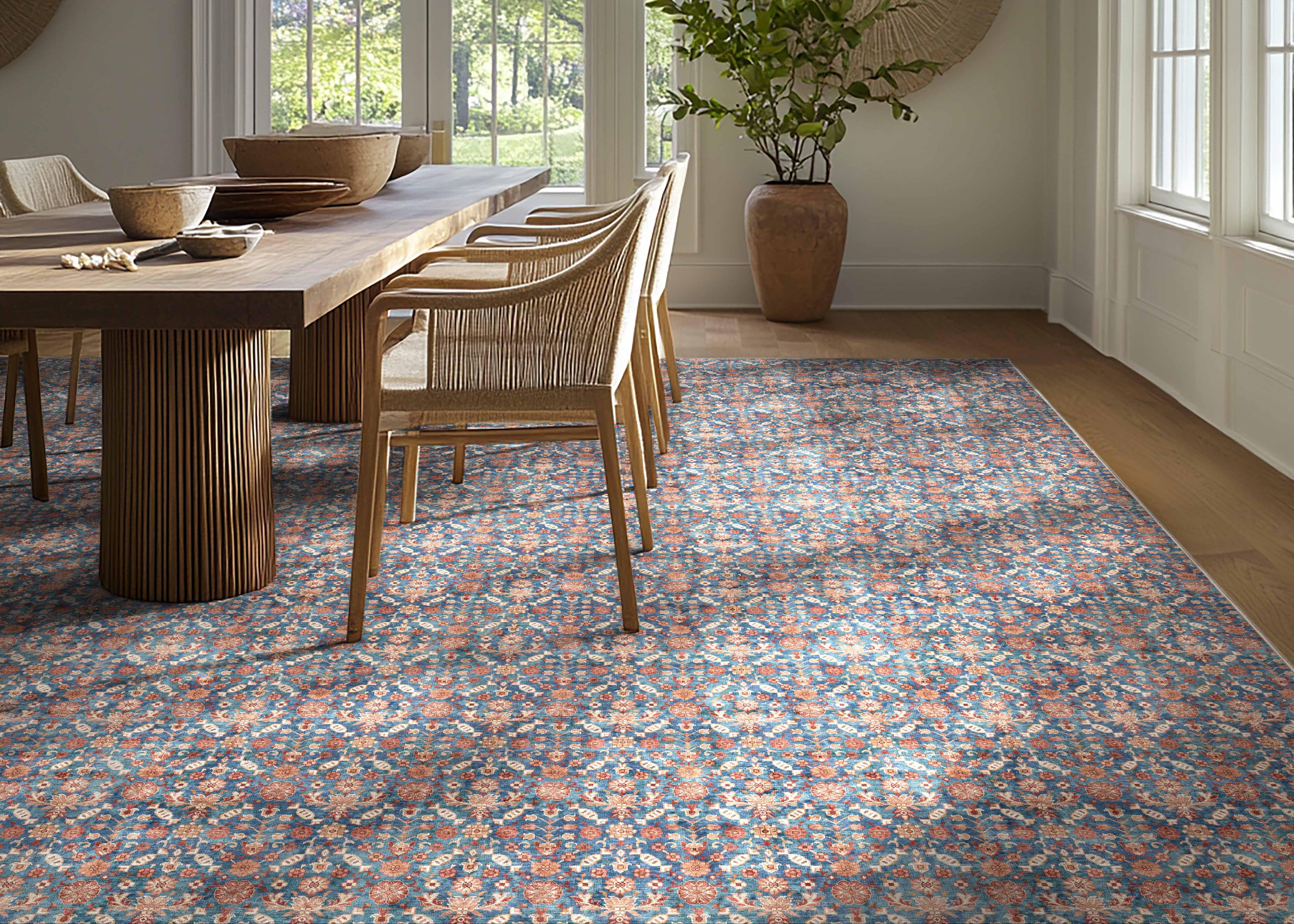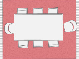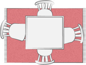 When shopping for a new dining room rug, consider the table, how big it is, and how many people it sits.