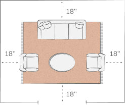 Tip: Leave 18-24” of exposed floor around the perimeter of your rug.